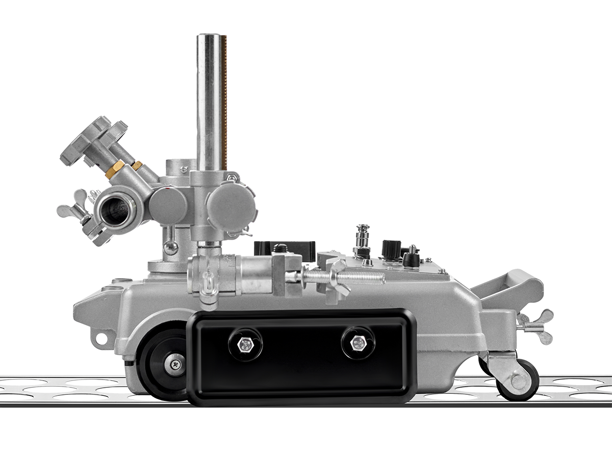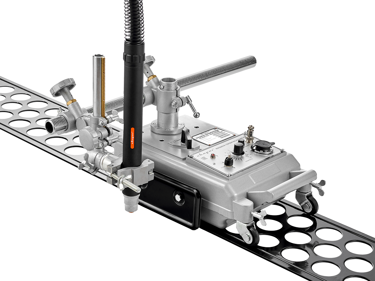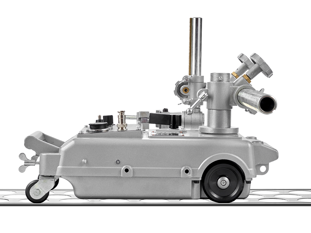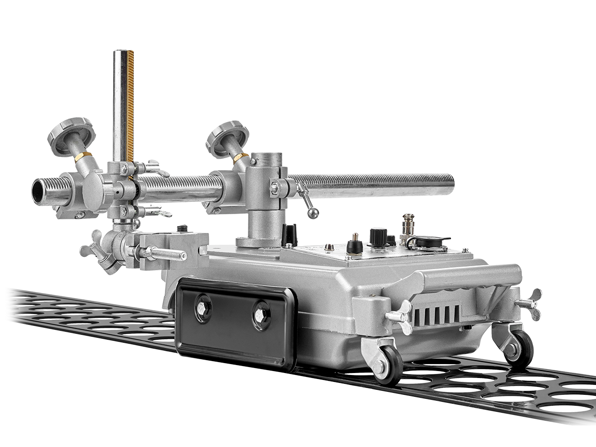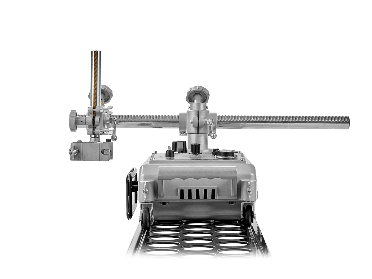 Самоходная тележка перемещается вдоль линии реза по направляющему рельсу или при помощи циркульного устройства. Привод электрический– 220В.