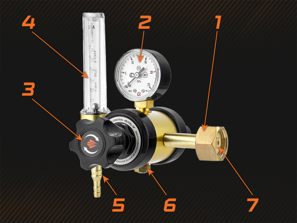 - Давление в рабочей камере второй ступени редуцирования устанавливается вращением регулировочного винта (3). Расход газа контролируется ротаметром (4).