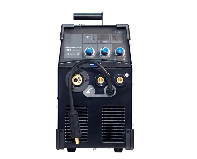 SPEEDWAY 250 - трехфазный аппарат для полуавтоматической сварки стальной проволокой в среде инертного/активного защитного газа MIG-MAG, а также для ручной дуговой сварки штучным электродом MMA. Благодаря продолжительному режиму работы на максимальных токах и возможности установки большой бобины D300, аппарат прекрасно подходит для работы на производстве, равно как и в профессиональном автосервисе. Удобный интерфейс управления всеми параметрами сварки на лицевой панели позволит настроить полуавтомат для выполнения широкого спектра сварочных работ на высшем уровне. Передовая инверторная технология IGBT собственной разработки гарантирует надежность работы данной техники на долгие годы.
