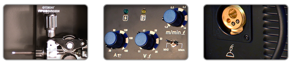 - Наличие стандартного разъёма евроразъёма для сварочной горелки в случае необходимости позволит произвести ее замену без особых сложностей.