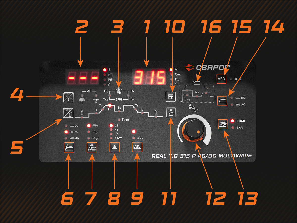 Аппарат REAL TIG 315 P AC/DC MULTIWAVE имеет удобную систему управления