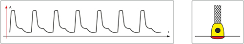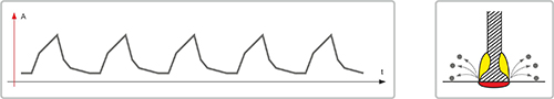 Технология ПУЛЬС с высокой скоростью переноса. Высокая динамика переноса позволяет добиться более глубокого проплавления, одновременно со снижением теплового влияния на зону вокруг сварочного шва