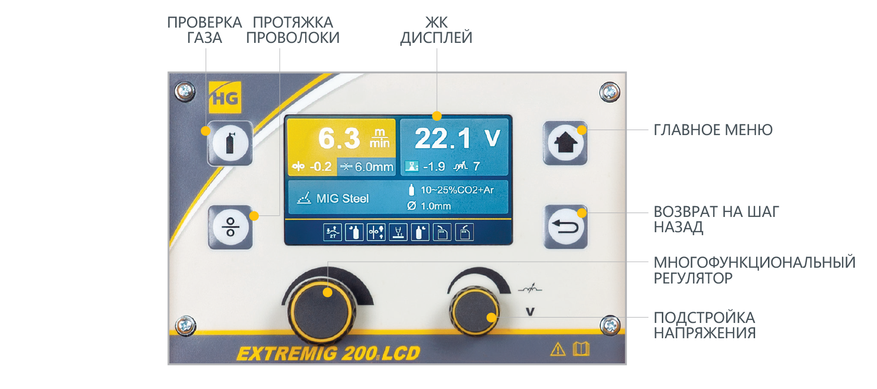 HUGONG EXTREMIG 200 III LCD - однофазный синергетический инверторный сварочный полуавтомат, с уникальными функциями и возможностями! Компактный, надежный и высокотехнологичный. Интеллектуальная синергетическая настройка параметров сварки, процесс сварки контролируется и управляется с высокой скоростью на всех этапах. 4 - роликовый подающим механизм с мощным электромотором и алюминиевым литым корпусом. Встроенные программы для сварки алюминия, малоуглеродистой стали, нержавеющей стали, порошковой проволоки, МИГ-пайки (CuSi3). Идеален для сварки тонколистовых металлов.